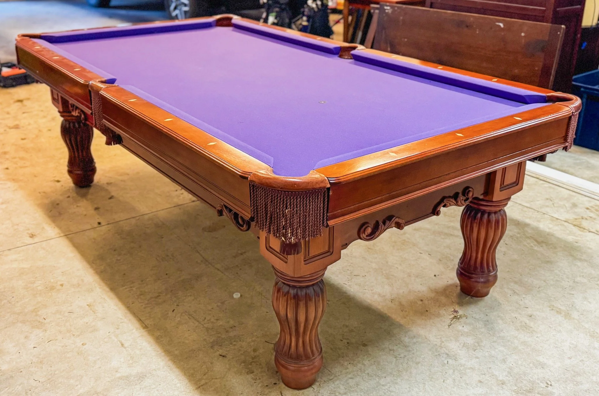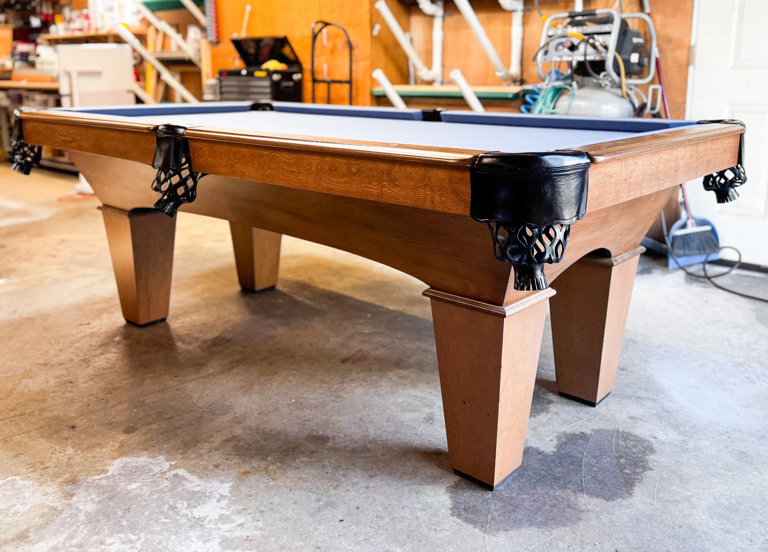 We spend most of our time working out of our van on the road servicing pool tables all over the Pacific Northwest including moves, set ups, recovers and repairing tables that need a little extra love. Because we travel and our office is our Ford Transit Van, we unfortunately do not have a show room as no one would ever be there to show you our tables. That said, we take great pride in what we do and only list tables that we are proud to put our name on. If the table needs work, or is in poor condition, it does not make it to the open market. We also do not believe in hidden pricing so all prices include new cloth, all the accessories you need to play pool as well as delivery and installation in the Portland Metro Area. It’s a one stop shop. You don’t have to worry about buying the table and then paying for the balls and cues as well as having to pay to have it set up properly, we take care of everything. All the tables listed below will come with warranties on all the cushions, cloth and slate work as well. We want to offer you peace of mind, make you confident and comfortable in your pool table endeavor and make sure you are playing pool as soon as possible.